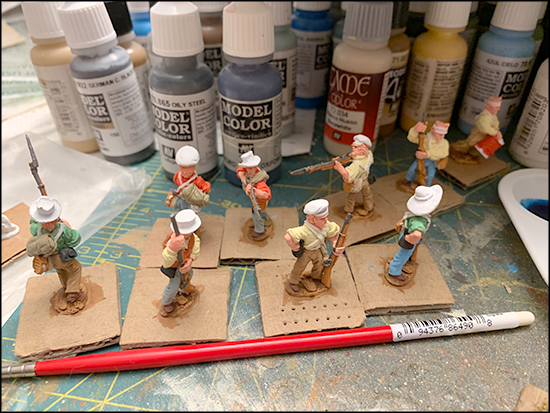 They have a lot of rocky bits, which I highlighted in gray and did a few light drybrushings over before I flocked them.